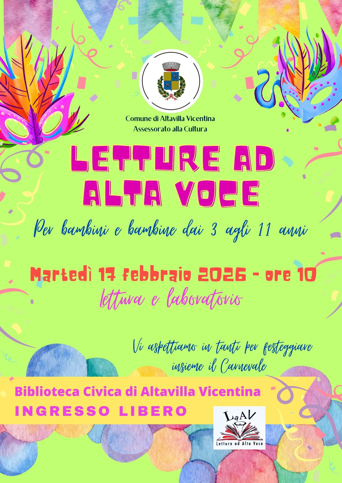 Descrizione Letture ad Alta Voce - martedì 17 febbraio 2026 - ore 10:00 - Biblioteca Civica. Allegato: nr.1