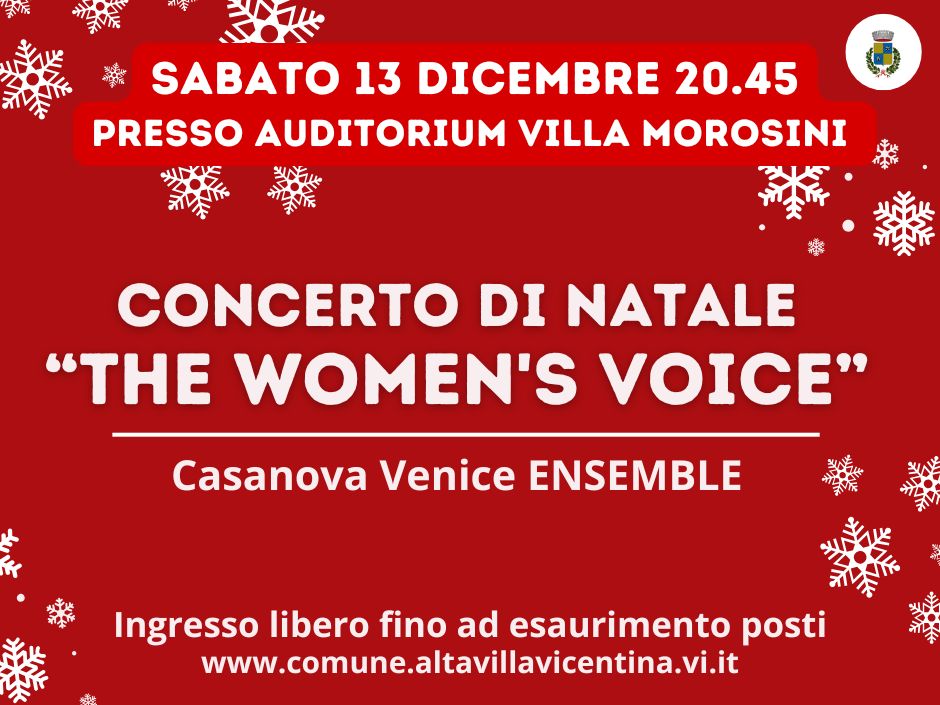 “The Women’s Voice” – Auditorium di Villa Valmarana Morosini – Sabato 13 dicembre – ore 20:45